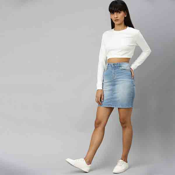 Solid pleated mini A-Line skirt, has button detail, concealed zip closure in the back, straight hem