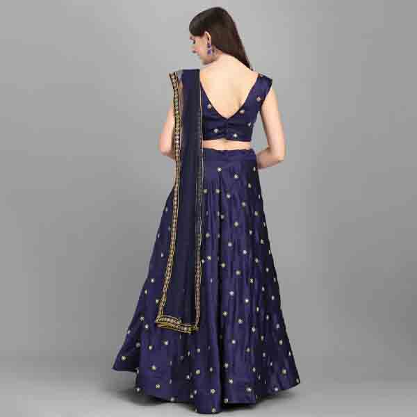 Navy Blue Embroidered Semi-Stitched Lehenga Choli Set With Dupatta